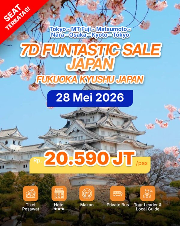 Reviews There are no reviews yet. Be the first to review “7D FUNTASTIC SALE JAPAN – FUKUOKA KYUSHU JAPAN [ 28 Mei 2026 ]”Cancel ReplyYour email address will not be published. Required fields are marked *Name *Email *Your review * Save my name, email, and website in this browser for the next time I comment. Submit